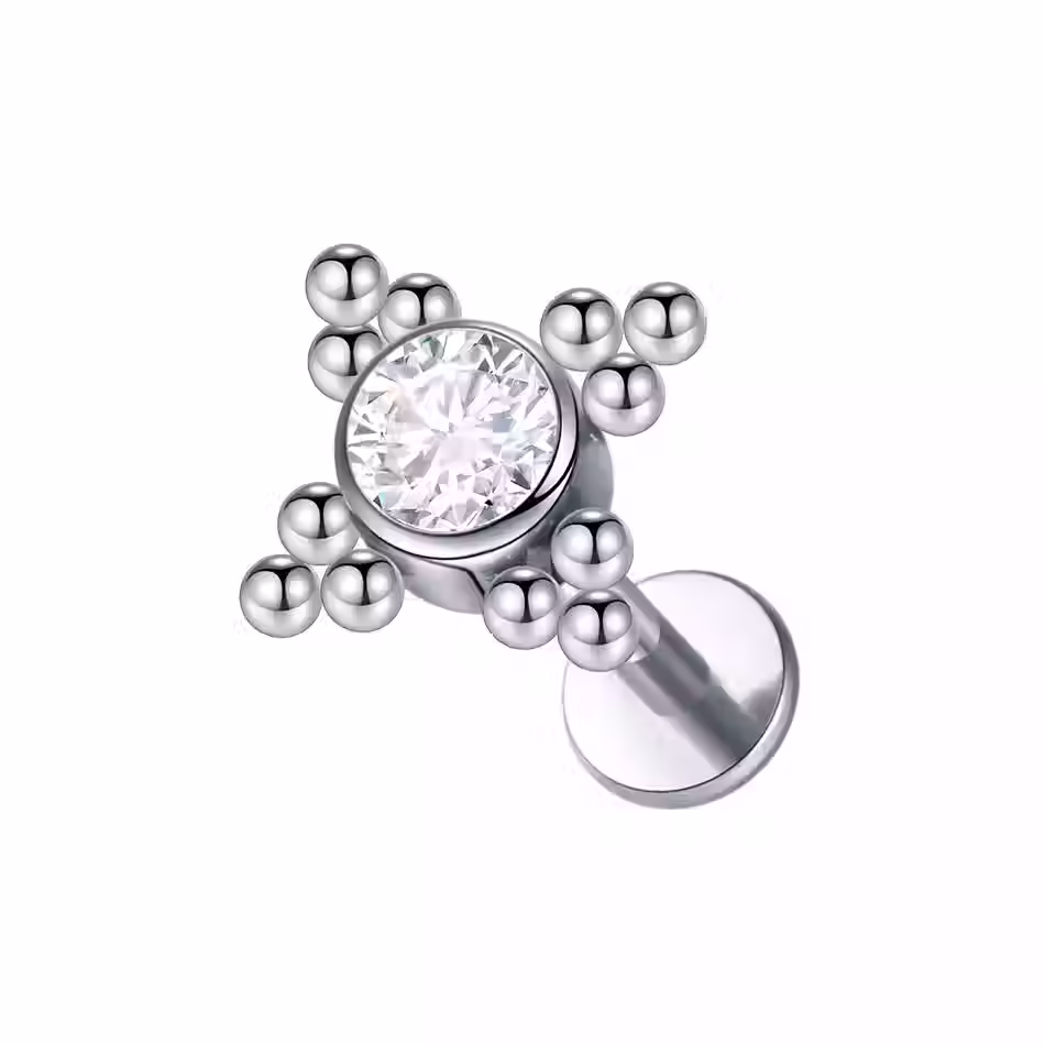 This attachment is most suitable for what is referred to as a "labret" bar. This jewellery is suitable for most areas.